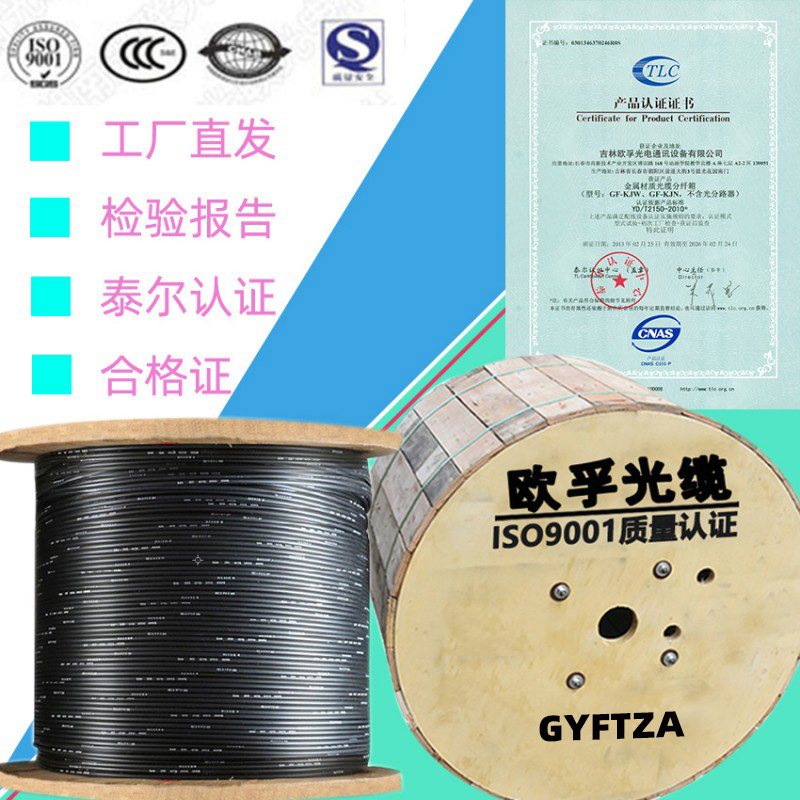 GYFTZA光纜,層絞式結構,室外用、油膏填充、鋁帶縱包低煙無鹵外護套。采用層絞式結構,光纖套入由高模量聚酯材料制成的松套管中,(光纖采用烽火及長飛的A級光纖保證傳輸性能優良結構性能穩定),套管內填充防水松套管化合物。松套管(和填充繩)圍繞非金屬中心加強芯纜芯填充物(FRP)絞合成緊湊的纜芯,纜芯內的縫隙充以